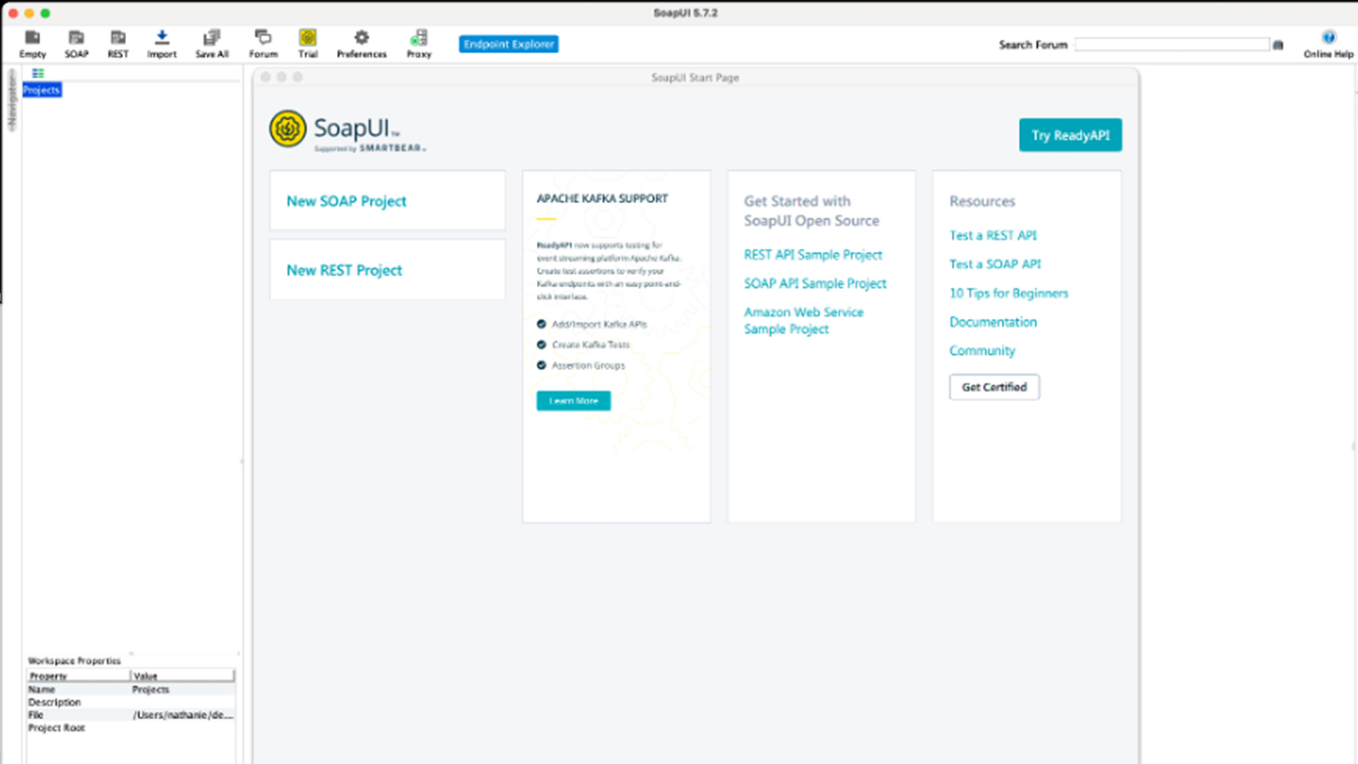 SoapUI is an open-source web service testing application for Simple Object Access Protocol and representational state transfers. Its functionality covers web service inspection, invoking, development, simulation and mocking, functional testing, load and compliance testing.