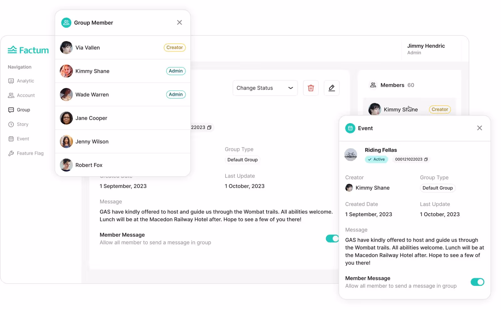 An app is never the only part of a platform. For the Factum team we developed a management dashboard where everything behind the application can be managed. From managing users, groups and events to detailed analytics.