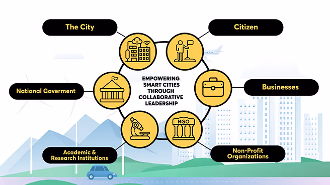 There is no such thing as a smart city without close collaboration between various stakeholders, each playing a crucial role in its development. Smart cities thrive when diverse groups unite in a pragmatic and well-coordinated effort. This also implies strong leadership, vision, and a commitment to a long term plan.
