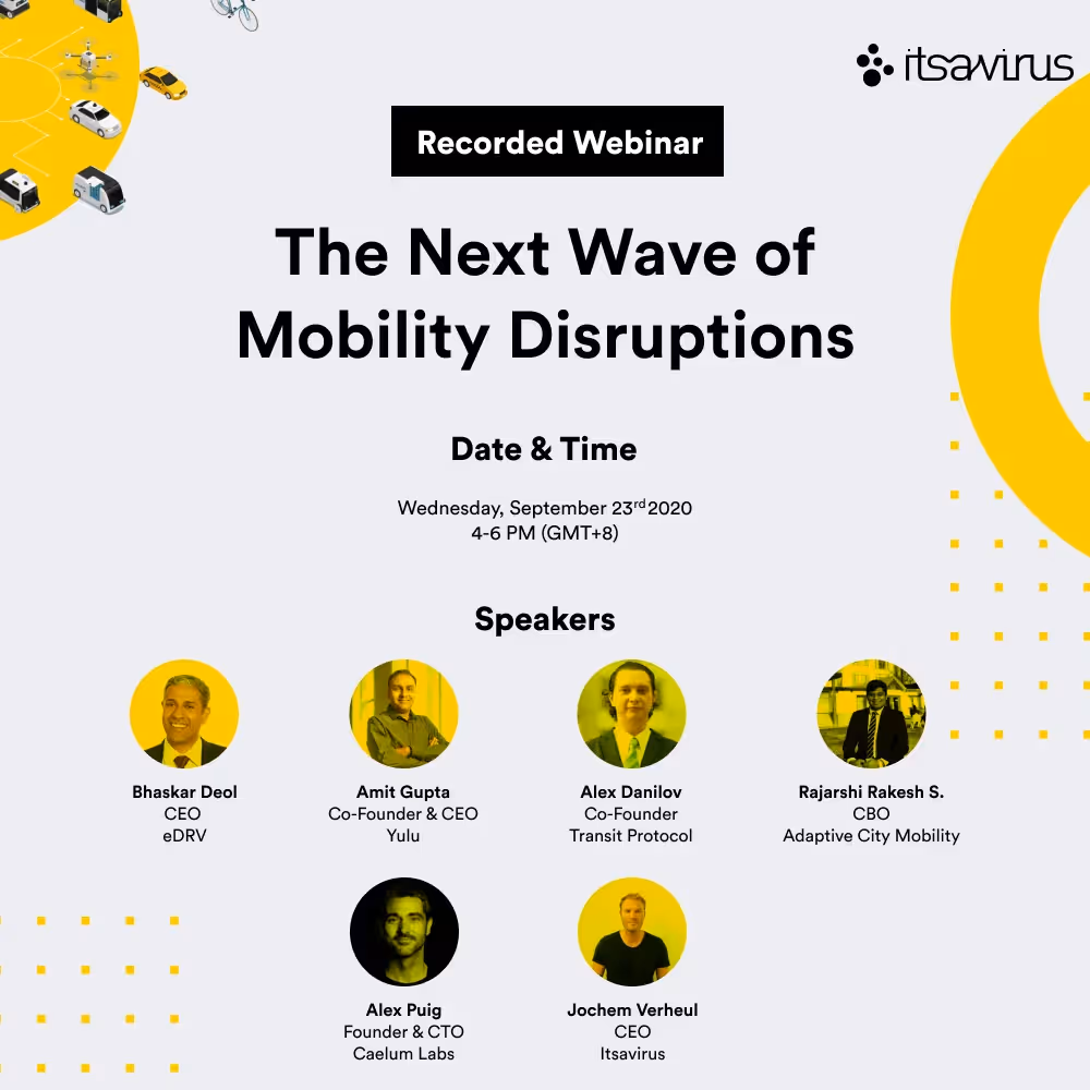 In September, we hosted a webinar on “The Next Wave of Mobility Disruptions”. We had a range of great speakers from across the globe, each of whom kindly shared their knowledge and experience.